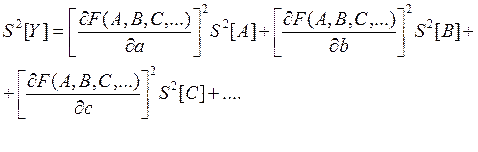 Если дисперсии аргументов известны, то оценка дисперсии результата измерения s2 [Y] для косвенно измеряемой величины вычисляется по формуле