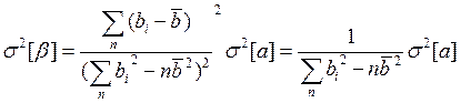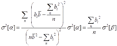 Перейдем теперь к непосредственной оценке дисперсий коэффициентов b и a. Считая, что величина b измеряется без погрешности, мы имеем право рассматривать любые значения bi, входящие в выражения для расчета коэффициентов, как неслучайные числа.