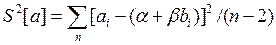 Последнее выражение является аналогом выражения (14-9). В числителе этих выражений стоят суммы квадратов отклонений отдельных результатов измерения от оценок их истинных значений, в знаменателе — число степеней свободы. В математической статистике доказано, что при обработке совместных измерений число степеней свободы определяется числом координатных точек п минус число неизвестных коэффициентов т в исследуемой функциональной зависимости. В рассматриваемом случае т = 2 (коэффициенты a иb), поэтому число степеней свободы равно п — 2.
