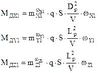 - коэффициенты (всегда отрицательные), т.к. их величины зависят от формы ракеты, от положения центра тяжести и от числа Маха.
