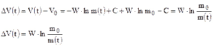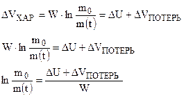 Формула показывающая, сколько нужно израсходовать топлива, чтобы сообщить КК дополнительную скорость (ΔU+ΔVПОТЕРЬ).