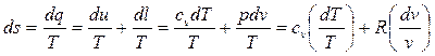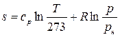 Интегрируя это тождество и заменяя одну пару параметров состояния с помощью уравнения состояния pv = RT другой, получим формулы для вычисления энтропии для любого состояния газа, отсчитанного от нормального состояния (нормальным состоянием газа при котором энтропия равна нулю – р = 101325 Па, Т = 273,15 К):