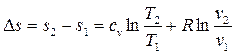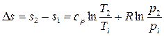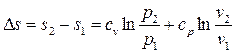 Изменение энтропии между двумя произвольными состояниями газа 1 и 2 определяют по следующим формулам: