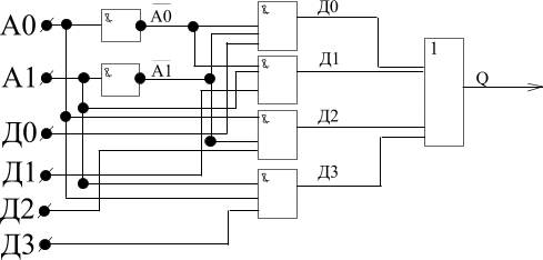Д-Мультиплексор – это цифровая интегральная микросхема, подключающая один вход к одному из нескольких выходов, в зависимости от адреса, поданного на шину адреса.