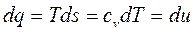 т. е. вся подведенная (отведенная) теплота идет на изменение внутренней энергии тела. Принимая, что сv = const, получим: