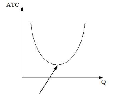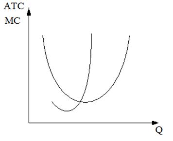 График демонстрирует, что с ростом выпуска продукции средние издержки постепенно снижаются, при определенном объеме выпуска – они минимальны (потому что здесь проявляется второй этап стабилизации затрат, см. выше), а вот дальнейший рост объема выпуска приводит к росту средних издержек.
