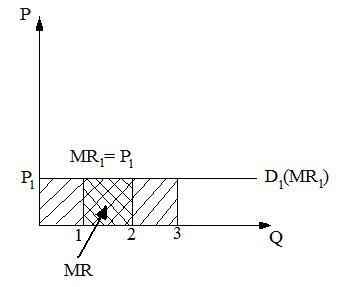 На рынке совершенной конкуренции предельный доход всегда совпадает с ценой: MR = P. Таким образом предельный доход показывает на какую величину возрастает валовой доход с реализации одной дополнительной единицы продукции.