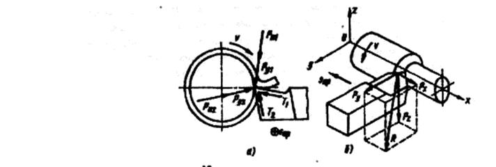 Точки приложения этой силы находятся на рабочей части резца. Для практических целей обычно нужна не сама равнодействующая R, а ее составляющие, действующие в заданных направлениях. Такими силами являются: