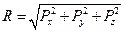 Эти силы взаимно перпендикулярны, поэтому равнодействующую R определяют как диагональ параллепипеда