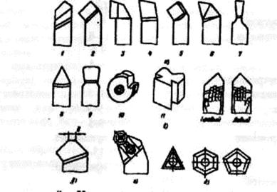 По роду материала - из быстрореза, с пластинками из твердого сплава, минера-локерамики, с кристаллом алмаза Широко применяются резцы с многогранными непе-ретачиваемыми пластинами.