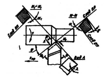 Вспомогательный передний угол γ1- угол измеряется во вспомогательной плоскости.