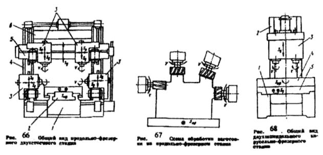 Фрезеруют поверхности заготовок большой массы и размеров торцовыми и концевыми фрезами. Строятодностоечными идвухстоечными с длиной стола 1250 -12000 мм, шириной 400 - 5000 мм Головки на траверсе могут поворачиваться на 30 °. Шпинделькаждой головки может перемешаться в осевом направлении на100-200 мм.