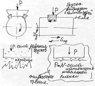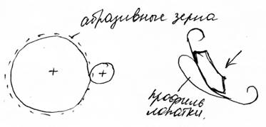 К кругу прижимают заготовку. Вместо зерен можно использовать абразивные порошки(окись хрома и др.)