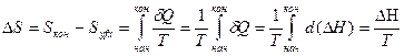 Знак изменения энтропии определяется знаком теплоты процесса, т.е. если ΔH>0, то и ΔS>0