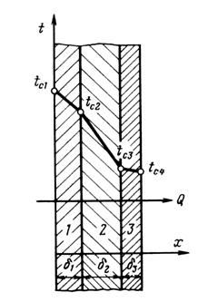 Рис. 9.3 – Распределение температур по толщине многослойной плоской стенки