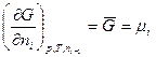Частную производную термодинамического потенциала всей системы при изменении содеpжания i-го участника на 1 моль в условии постоянства содержания всех других участников и внешних параметров называют парциальным термодинамическим потенциалом (¯F, ¯G¯)данного i-го участника или химическим потенциалом μ следовательно, можно записать: