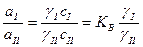 Если в выражение Термодинамической константы распределения вместо активности поставить ее выражение через коэффициент активности и концентрацию компонента, то получим: