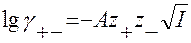 где – средний коэффициент эл-та, заряды ионов, ионная сила раствора, А – коэф-т, зависящий от температуры и диэлектр. проницаемостью.