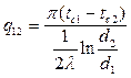 Рассмотрим однородную цилиндрическую стенку с внутренним диаметром d1, наружным d2, постоянным коэффициентом теплопроводности λ. Заданы температуры горячей среды tж1 и холодной tж2, соответствующие значения коэффициентов теплоотдачи а1 и а2. При установившемся тепловом режиме можно записать: