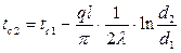 Температуры на поверхностях цилиндрической стенки определяются в результате решения уравнений (11.13) относительно разности температур: