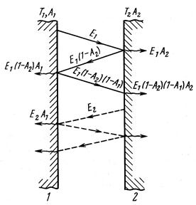 Каждое из рассматриваемых тел имеет эффективное (полное) излучение, соответственно, Eэф1 и Eэф2– Для первого тела Eэф2 является падающим излучением, поэтому