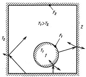 Рис. 12.3 – Схема лучистого теплообмена между телами в замкнутом пространстве