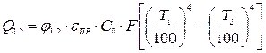 В соответствии с формулой (12.16) полный поток теплоты, передаваемый излучением от горячего тела более холодному, пропорционален поверхности тела, приведенной степени черноты и разности четвертых степеней абсолютных температур тел.