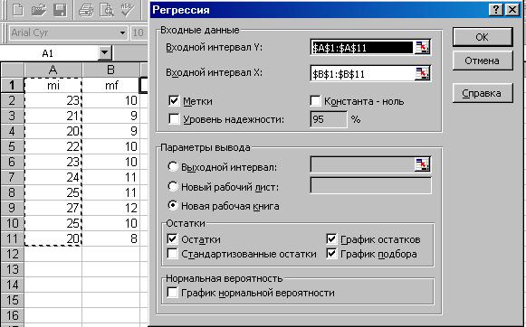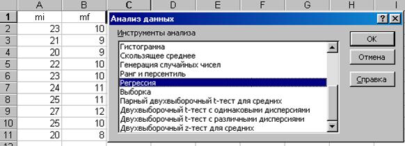 Рис. 4.4. Регрессия - выбор инструмента анализа.