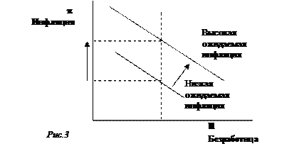 В любой момент времени правительство, управляющее совокупными расходами, может выбрать на кривой Филлипса определенную комбинацию уровней инфляции и безработицы для краткосрочного временного интервала. Этот выбор зависит от ожидаемого темпа инфляции: чем выше ожидаемая инфляция, тем выше располагается кривая Филлипса. Выбор экономической политики в этом случае затрудняется, так как фактический уровень инфляции будет выше для любого уровня безработицы.