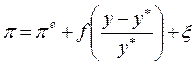 где p и pe – фактический и ожидаемый темп инфляции (соответственно); и и и* — фактический и естественный уровень безработицы (соответственно); e — внешний ценовой шок; у — эмпирический коэффициент.