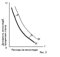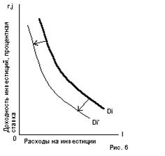 На инвестиции, кроме процентных ставок, влияют и другие факторы. Например, на рис. 5 можно увидеть, как ВВП сдвинет кривую спроса на инвестиции вправо - вверх.
