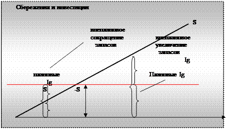 Например, на уровне ВВП в 410млрд.д.ед. (столбец 3) сбережения домохозяйств составят только 5млрд., а расходы – 405млрд. из 410млрд.д.ед. доходов. Если добавить 20млрд.д.ед. в виде инвестиций, то совокупные расходы (С+Ig) составят 425млрд.д.ед. Они превысят ВВП на 15млрд.д.ед., потому что сумма, которую фирмы собираются инвестировать на этом уровне ВВП, на 15млрд.д.ед. больше сбережений домохозяйств. Очень малое изъятие средств на сбережения при этом сравнительно низком уровне дохода будет полностью компенсировано относительно крупным вливанием инвестиционных расходов, благодаря которому С+Ig превысит ВВП и вызовет его подъем.
