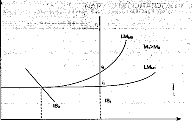 Рис. 8.9 отражает эту кейнсианскую ситуацию. На рисунке видно, что как в случае «ликвидной ловушки», так и в случае «инвестиционной ловушки» меры монетарной политики, сводящиеся к увеличению денежной массы, абсолютно неэффективны. Увеличение денежной массы от Мо к М1 при довольно эластичной линии IS он лишь удлиняет протяженность ликвидной ловушки, оставляя неизменной ставку процента.