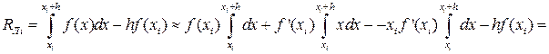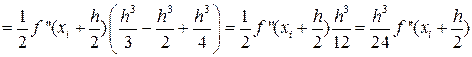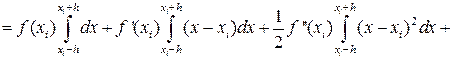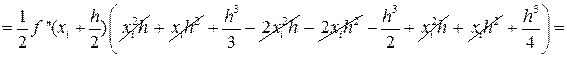 Оценим погрешность формулы (16) на отрезке [xi,xi+h]. Для этого разложим функцию f(x) по формуле Тейлора, выбирая xi за центр разложения и предполагая наличие у функции требуемых по ходу рассуждений непрерывных производных.