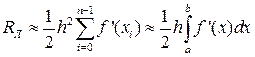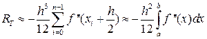 Поскольку в (17) были отброшены члены, содержащие более высокие степени длины интервала, то выражение остаточного члена (19) является асимптотическим, т.е. выполняющимся при h→0 с точностью до членов более высокого порядка малости. Но для справедливости этой оценки необходимо существование непрерывной f’(x); если f’(x) кусочно-непрерывна, то удаётся сделать лишь мажорантную оценку