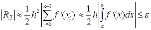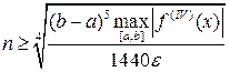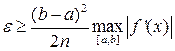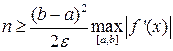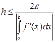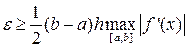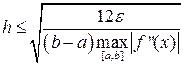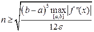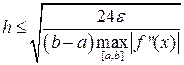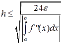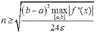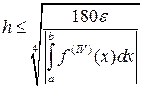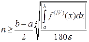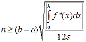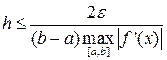 Перед началом вычислений по данному методу необходимо определиться с h или, что, по сути, то же самое, с n. Пусть известны границы отрезка [a,b], задана подынтегральная функция f(x) и точность ε, с которой должен быть вычислен интеграл. Чтобы определить h и n воспользуемся простым и очевидным неравенством: