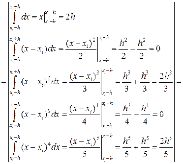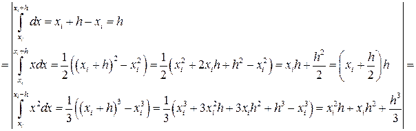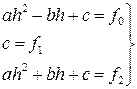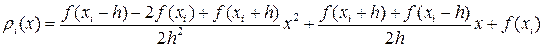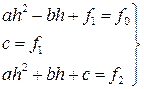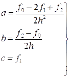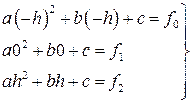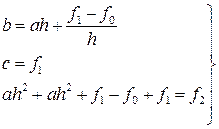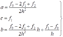 . Для нахождения коэффициентов ai, bi, ci составим систему из трёх уравнений. Для простоты обозначим ai≡a, bi≡b, ci≡c, f(xi-h)≡f0, f(xi)≡f1, f(xi+h)≡f1. Тогда
