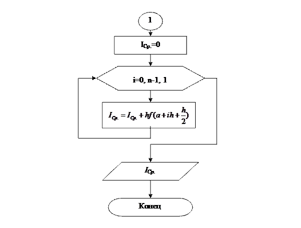Сравнивая формулы (19) и (30) погрешностей методов приходим к выводу, что погрешность метода средних во много раз ниже погрешности метода левых или правых прямоугольников, т.е. метод средних во много раз точнее и для достижения заданной точности требует меньше машинного времени. Поэтому блок-схему построим именно для метода средних.