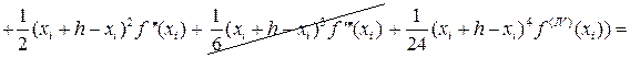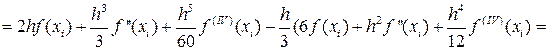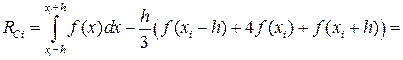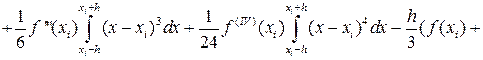 Для оценки погрешности формулы Симпсона на отрезке [xi-h, xi+h] разложим функцию f(x) по формуле Тейлора до пятого члена с центром разложения в точке xi. То есть