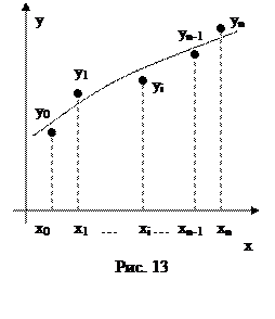 В задачу аппроксимации входит нахождение такой функции y=f(x), что расстояния между заданными точками yi и значениями f(xi) были минимальными (Рис. 13). Обозначим отклонение: