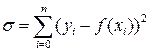 В качестве оценки общего отклонения кривой f(x) от табличных данных (Табл. 1) можно было бы взять сумму отклонений εi, но отклонения могут быть разными по знаку и, не смотря на большие εi их сумма может быть близка к нулю. Очевидно, что необходимо брать сумму абсолютных значений отклонений, но на практике неудобно пользоваться этой функцией, поэтому в качестве критерия оценки отклонения кривой берут сумму квадратов отклонений: