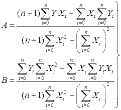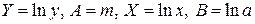Для линейной регрессии Y=y A=a, X=x, B=b. Для регрессии степенной: