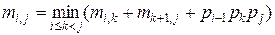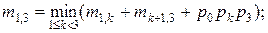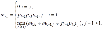 Запишем окончательное рекуррентное соотношение, позволяющее вычислить минимальное количество операций умножения, в следующем виде: