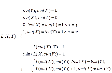 – две символьные строки, тогда для вычисления дистанции Левенштейна