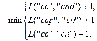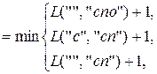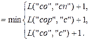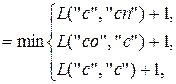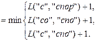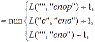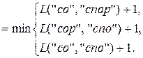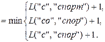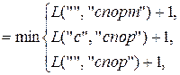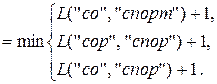 Шаги вычисления с 1 по 14 соответствуют рекурсивному погружению, а шаги с 15 по 28 – восходящему вычислению. Нетрудно убедиться, что для превращения слова «сор» в слово «спорт» достаточно удалить (или вставить) две буквы.