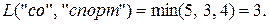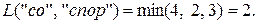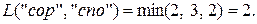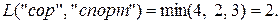 Результат выполнения программы (рис. 17) совпадает с результатом, полученным ранее вручную. Следует лишь обратить внимание, что в отличие от ручного просчета при выполнении функции levenshtein_r некоторыеподзадачи решаются по несколько раз. Например, дистанция между строками «со» и «спор» вычисляется 3 раза, а это в каждом случае приводит к повторному вычислению дистанций между «с» и «спор», «со» и «спо», «с» и «спо» и т. д.