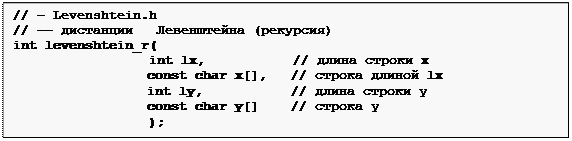 Рис. 17. Прототип функции levenshtein_r, вычисляющей дистанцию Левенштейна между двумя строками