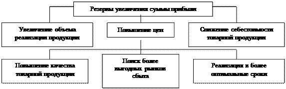 Резервы увеличения суммы прибыли определяются по каждому виду товарной продукции. Основным их источником является увеличение объема реализации продукции, снижение ее себестоимости, повышение качества товарной продукции, реализация ее на более выгодных рынках сбыта и т.д.