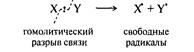 R- Радикал (свободный радикал) это частица с неспаренным электроном, образуется в результате гомолитического разрыва связи: