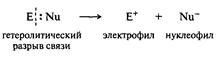 Нуклеофильные реагенты имеют целый или частичный отрицательный заряд, содержат атом с неподеленной электронной парой или p-связь: ОН-, NH3, H2O, CH3OH. Электрофильные реагенты несут целый или частичный положительный заряд: Н+, SO3.